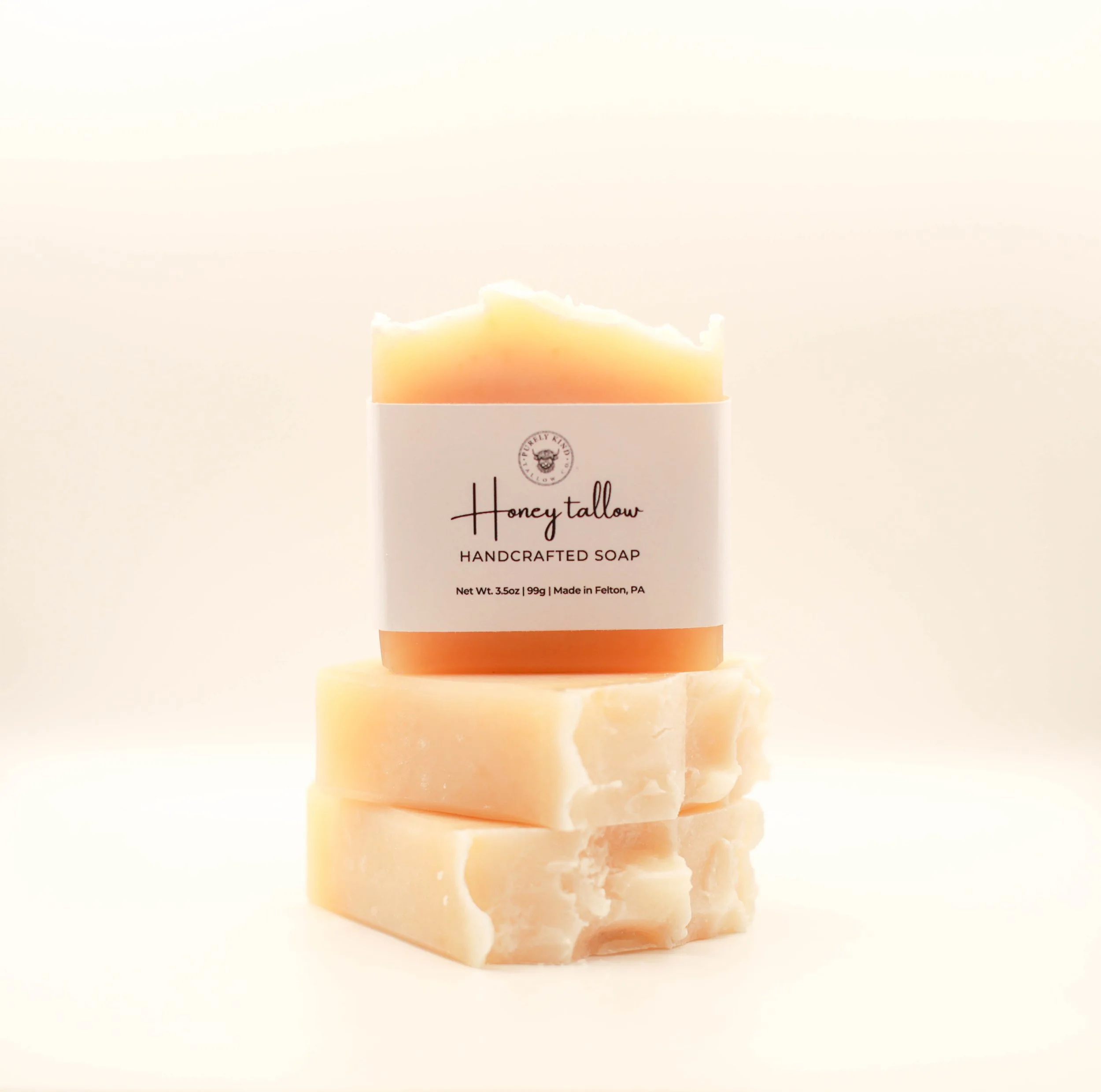 100% grass-fed, grass-finished tallow, honey, water, and lye (sodium hydroxide).